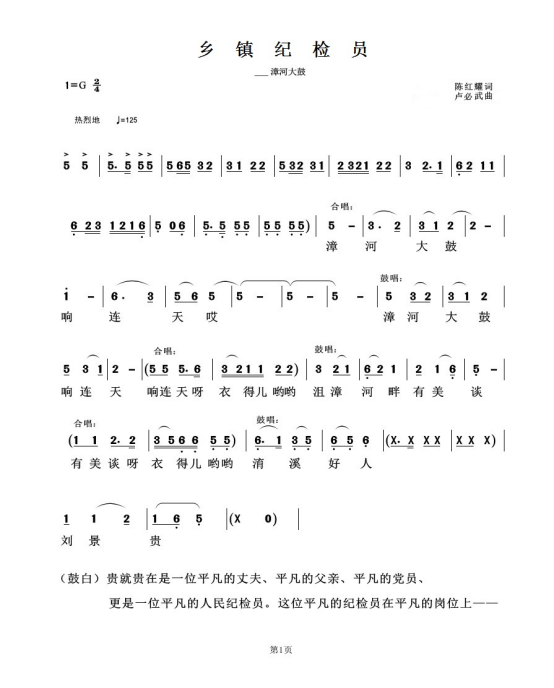 见《乡镇纪检员》2017年陈红耀词卢必武曲。
