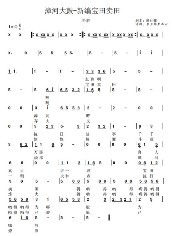 见《新编宝田卖田》2025年陈红耀词,罗卫华罗江云谱曲。
