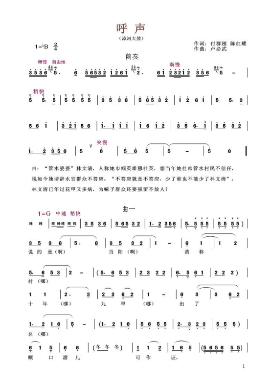 见《呼声》2016年付群刚陈红耀词卢必武曲。