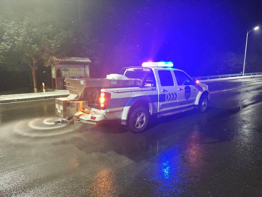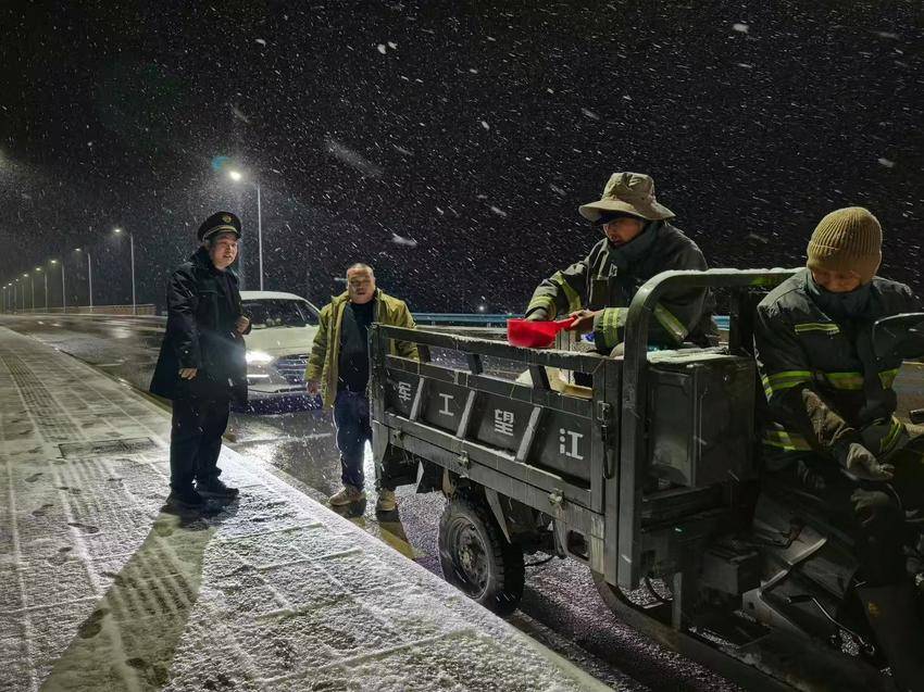 当日21时至次日凌晨1时,县城管局按照应急预案集结2支撒盐作业小组、5支积雪清理专班,率先对城区三座桥梁开展应急撒盐作业。除雪现场,城管局主要负责人崔丹、分管负责人王刚深入一线,实地查看桥梁及道路结冰情况、除雪作业进展,现场指挥调度各项工作。同时,崔丹同志反复叮嘱一线作业人员,务必遵守交通规则,做好防滑保暖措施,严防交通事故、摔伤、冻伤等意外发生,切实保障作业安全。