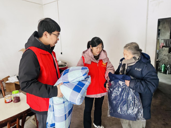 坝陵街道玫瑰园小区志愿者清扫小区通道 除了解决路面湿滑的难题,独居老人、残疾人等困难群体更让人放不下心。各村(社区)志愿者们冒着寒风,携带米、油、棉被、冬衣等生活物资上门,“敲门入户”走访慰问。 河溶镇过街楼社区,志愿者一大早就来到69岁的五保户郑家清家中,询问老人生活需求和身体状况,并叮嘱老人雨雪天气尽量减少外出,注意防滑保暖,有困难及时联系社区和志愿者。郑奶奶感动地说:“这么冷的天,你们还特意来看我,帮我解决难题,真是太贴心了!”