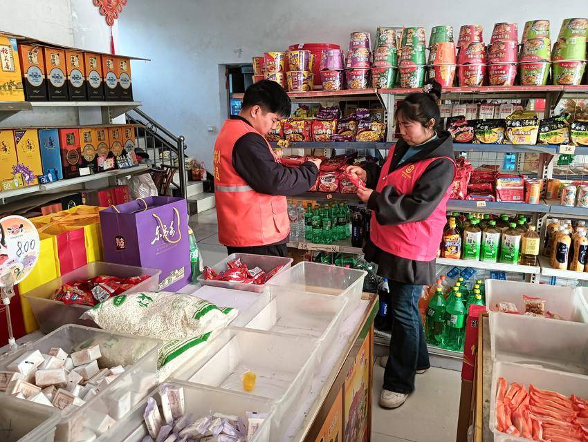 食品安全是节日保障的重中之重,检查组围绕群众节日消费热点,对商超内各类食品开展细致排查。重点检查粮油米面、肉类蛋奶、糕点糖果、酒水饮料等节日热销食品的生产日期、保质期、储存条件及包装完整性,严厉排查“三无”食品、过期变质食品、假冒伪劣食品等问题产品;同时,查看经营户是否落实食品进货查验及索证索票制度,是否建立健全进货台账,确保食品来源可追溯、质量有保障。检查过程中,工作人员还向经营户普及《中华人民共和国食品安全法》相关知识,强调食品安全主体责任,引导经营户诚信经营、规范经营,严把食品质量关,让村民买得放心、吃得安心。
