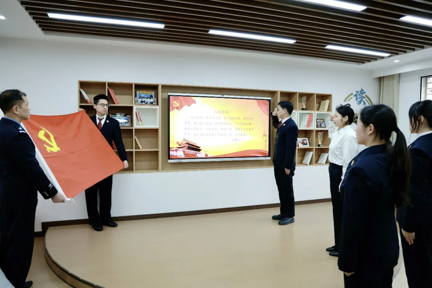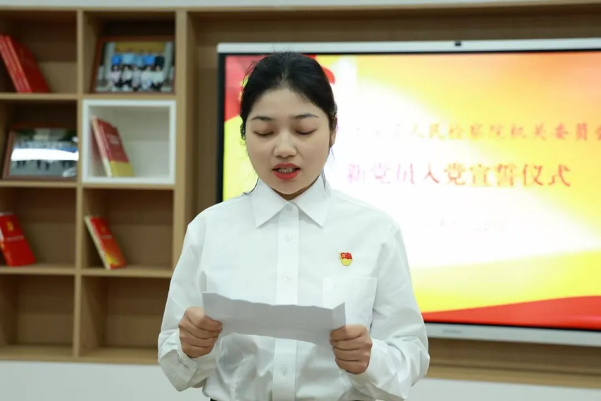 在雄壮的《国际歌》声中,新党员入党宣誓仪式正式拉开帷幕。机关二支部新接收的预备党员汪红桃,与本季度过“政治生日”的郑雯静、杨慧凌两名正式党员一同,在领誓人的带领下,面向鲜红的党旗,庄严宣誓。铿锵有力的誓言,表达了他们对党的无限忠诚和为共产主义奋斗终身的坚定决心。