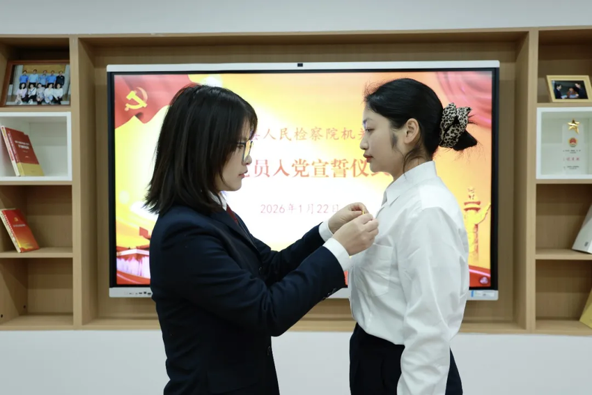 随后,党支部书记为新党员佩戴了党员徽章、发放了党员手册。