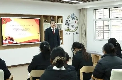 宣誓仪式后,党支部专门为郑雯静、杨慧凌两名同志举行了“政治生日”仪式。支部委员向两位同志赠送了承载着组织诚挚祝福和殷切期望的“政治生日”贺卡。