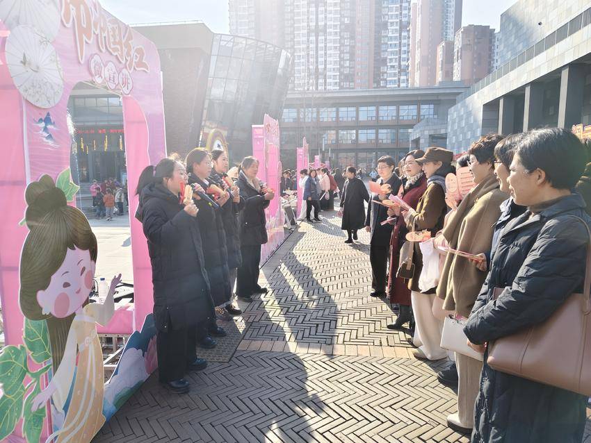 活动精心设置6个集智点位,亮点纷呈、趣味满满。在“法护芳华”知识抢答环节,围绕《中华人民共和国妇女权益保障法》等法律法规设置的10道题目引发热烈抢答,现场气氛活跃,社区为答对群众送上抽纸等实用小礼品,寓法于乐、深入人心。县中医院专家带来的女性健康科普讲座座无虚席,从日常养护到科学养生,干货满满,专家还现场教学健身操,手把手传授健康秘诀,姐妹们跟着节拍舒展身体,在律动中收获活力。最受欢迎的当属集章打卡环节,居民们穿梭于各个点位,集齐4个及以上印章即可兑换鲜花一束,大家在互动中收获喜悦与美好,笑容如花般绽放。