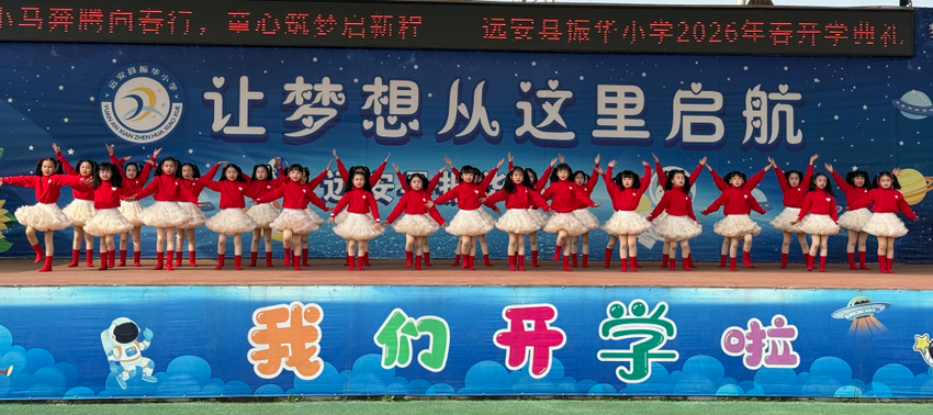 湖北日报客户端讯(通讯员陈颖超、汤贵婵、徐阳文婷)2026年3月4日,远安县振华小学以“马跃新程 童梦启航”为主题开展春季开学课程,通过整理收心、开学第一课、开学典礼、特色分享、安全护航等系列活动,引导学生快速收心归位,以饱满姿态迎接新学期。