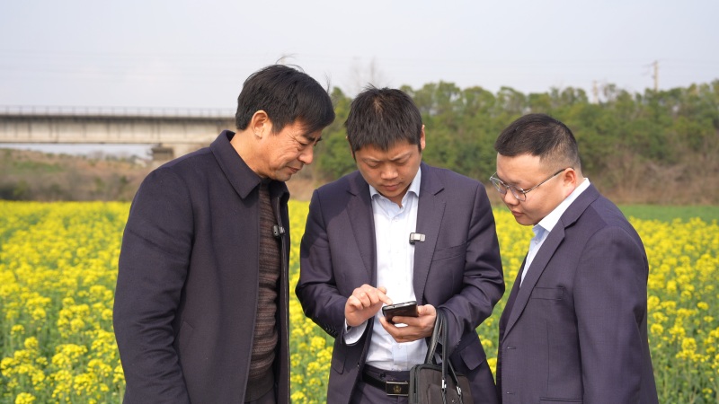 3月4日,当阳农商行网点支行的工作人员来到当阳市王店镇泉河村村民陈帮军的油菜田边,询问他两农信用价值贷的到款情况,是否还有资金缺口。