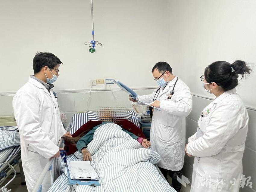早上八点,医护交班开始。余伟认真听夜班医师汇报住院患者的情况——哪个老人血压不稳,哪个糖尿病病人血糖控制不理想,哪个慢阻肺病人夜间喘得厉害,哪个卧床患者需要重点关注。他不光是听,还会一项项问清楚:降压药调整了没有?降糖方案是否合理?出入量记了没有?翻身护理做了没有?基层医师们一边答,一边把提醒记在本子上。