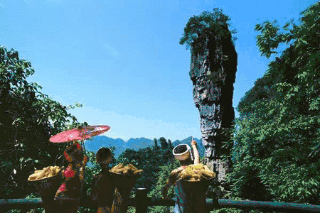 游览大湾口景区情人线:“姊妹峰”、“琴台”、“情人谷”、“对棋台”、“打一杵”、“绣楼”等景点,每个景点背后都蕴含了一个个古代土家族少女的优美爱情故事(游览时间约1.5小时)