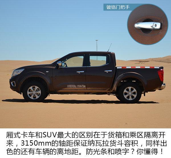 纳瓦拉的硬派外形觉得可以和大家印象中的“阴阴柔柔”的日产车型区分开来,同时作为一台定位于中高端皮卡车型,你如果掏钱购买它的话,你的左邻右舍也不会议论你开一台工具车。同时你还能享受到SUV车型高高在上的坐姿以及SUV不可比拟的巨大后斗空间。