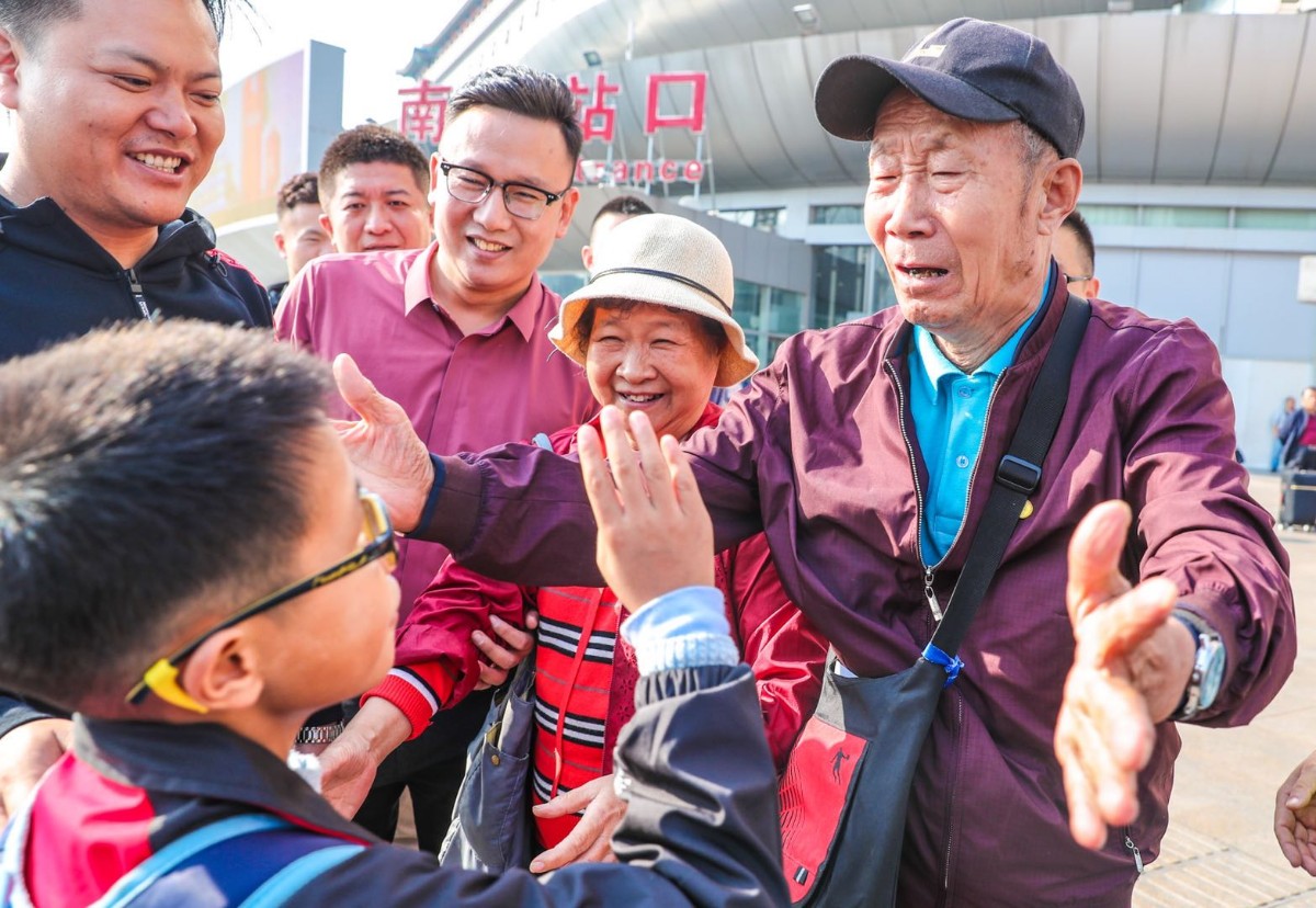 10月11日上午,怀柔慕田峪长城迎来了十名湖北省远安县的残障儿童。孩子们手拉手奋力攀登,脸上洋溢着幸福笑容。 这一幕,让高庆仙、袁振江夫妇满眼热泪。邀请孩子们来到首都北京,登长城、逛故宫、在天安门广场看升旗,是他们多年来最大的梦想。 从1998年起,家住朝阳双井的高庆仙、袁振江夫妇就化名“高振宁”,为远安特校的残障儿童寄去捐款,21年未曾中断。数年前,直到特校求助媒体,才终于找到了这对爱心夫妇。 这些年来,“高振宁”一直有一个心愿:邀远安特校的孩子们来京。数万名双井居民的得知之后,齐心协力行动了起来,他们拼命做公益、攒积分,帮高庆仙、袁振江和孩子们圆梦! “爷爷奶奶,我们终于见到您了!” 10月9日,中午1:30的北京西站南广场,高庆仙、袁振江在热烈的日头下焦急等待。 用“望眼欲穿”来形容,也一点儿都不过分。“我太想念那些孩子了!”已经81岁的袁振江不时踮起脚、伸着头张望,脸上写满了期待。“我上次去远安还是五年前,当时学校里总共五六十个娃娃,每一个都张开双臂让我抱!我不嫌累,挨个儿抱、挨个儿亲!” 袁振江的老伴高庆仙也已经74岁,她一边安慰袁爷爷,另一边自个儿也按捺不住激动。手中拎着一个大塑料袋,装满新鲜的香蕉和橘子,“孩子们都是第一次来北京,我得照顾好他们。”高庆仙说。 北京和湖北远安,1300公里山水相隔。此前21年,袁振江、高庆仙夫妇坚持为远安特殊教育学校捐资助学,先后共帮助140多名孩子完成了学业,也因此被远安县评为“荣誉县民”。