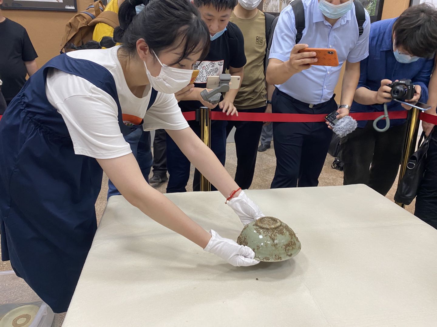 工作人员小心翼翼向媒体记者展示涉案海捞瓷器。