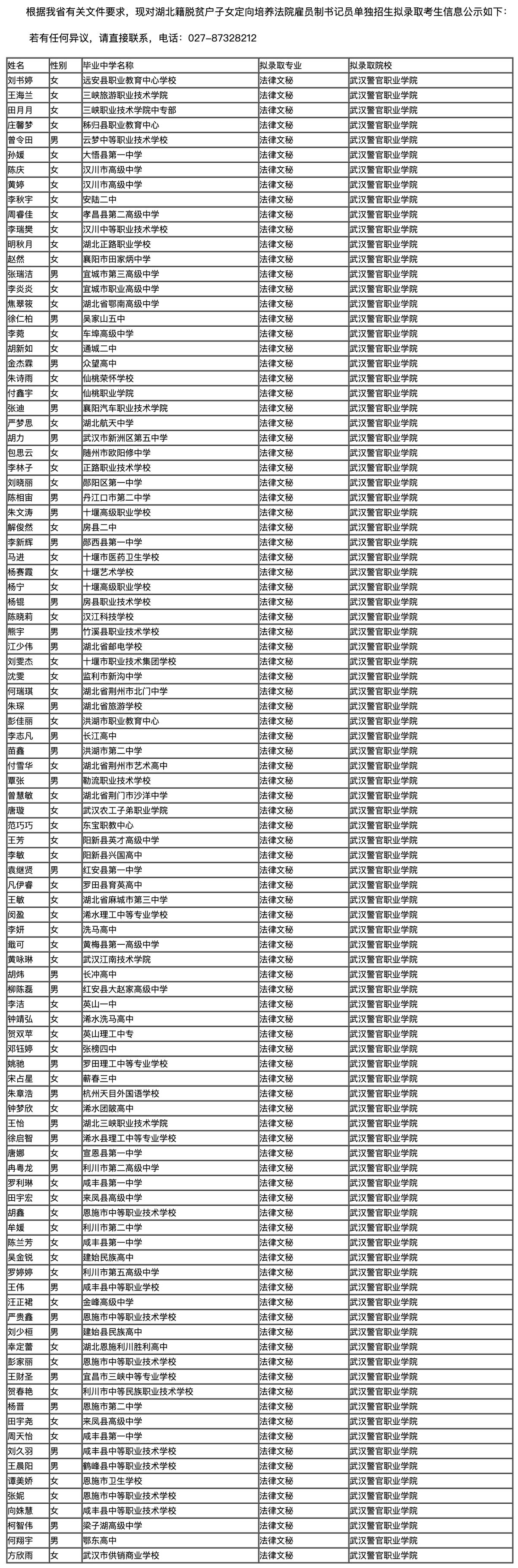 湖北日报讯(记者袁超一)6月26日从湖北省高级人民法院获悉,2021年湖北籍脱贫户子女定向培养法院雇员制书记员单独招生拟录取名单,已在湖北招生信息网公示。