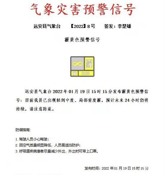[远安] @ 远安人,我县已出现雾霾天气,请大家加强防范! |