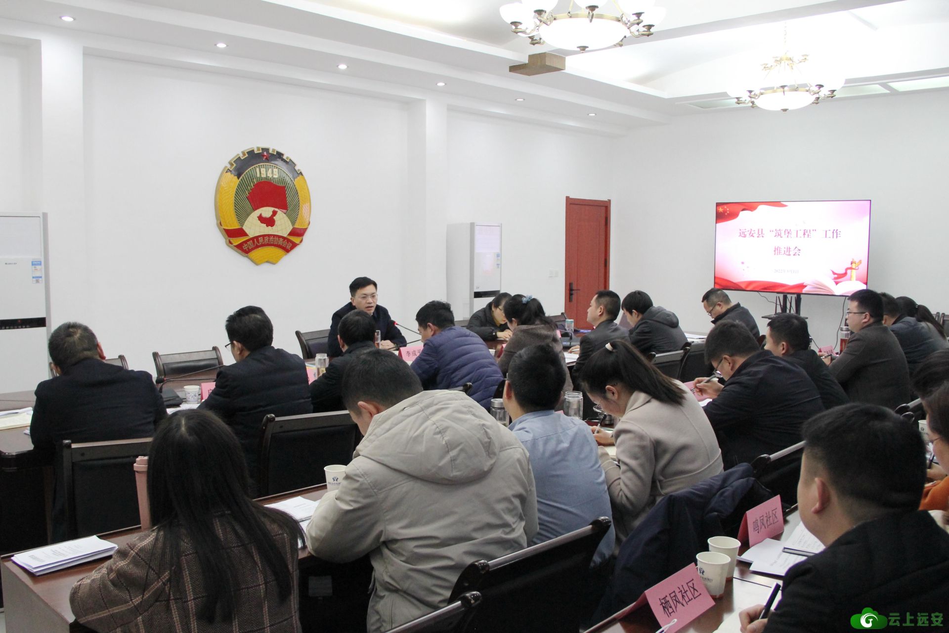 3月1日下午,远安县召开“筑堡工程”工作推进会。县委常委、组织部部长李成平出席会议,筑堡工程“八大应用场景”建设牵头单位主要负责人、各乡镇组织委员和社区书记参加会议。