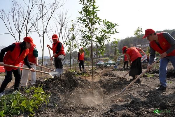 阳春三月,微风和睦,远安县嫘祖镇谭坪村一处道路边,一片热火朝天的劳动景象。植树节来临之际,远安法院20余名干警到驻点帮扶村开展春季义务植树活动。