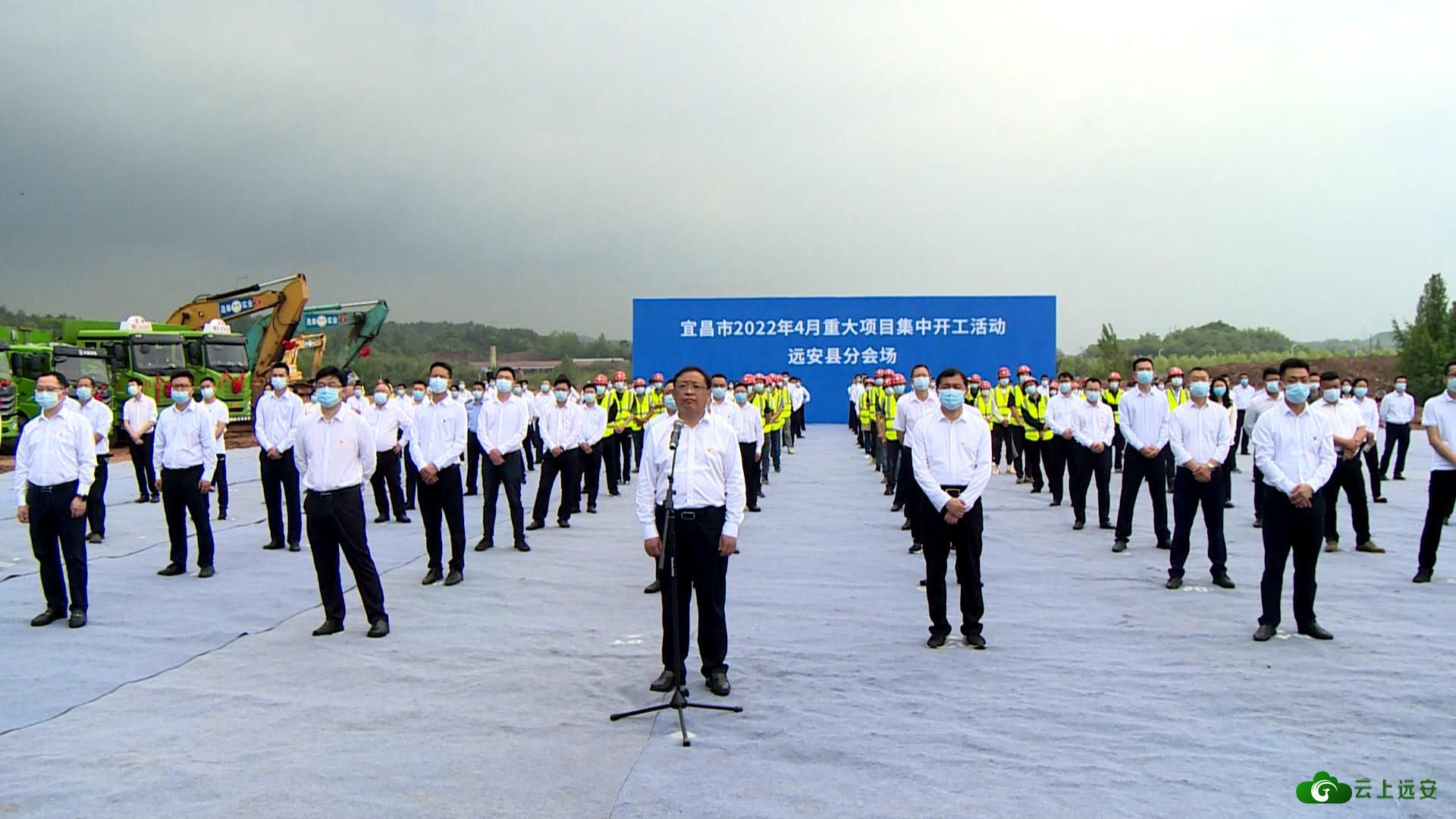 4月27日上午,宜昌市举行2022年4月重大项目集中开工活动,远安县委书记汤明在远安分会场介绍远安集中开工项目情况。活动结束后,远安分会场举行我县2022年4月重点项目集中开工仪式。我县本次新开工项目共20个,总投资32.2亿元。