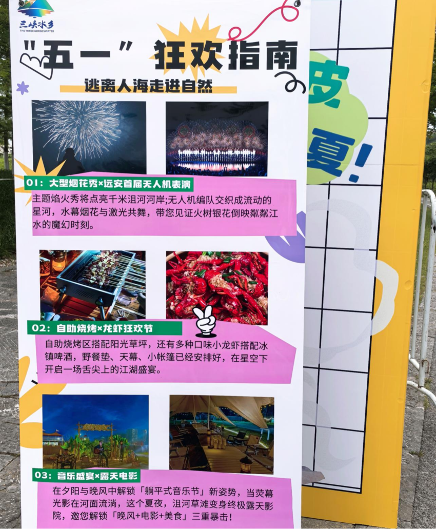 【五月·三江联谊嘉年华】 ◆“焰舞沮漳”烟花盛典:夜空为幕,百架无人机与璀璨烟花共舞,点亮三江交汇的奇幻之夜。让我们一起在烟花下许愿,共享这绚丽多彩的美景。