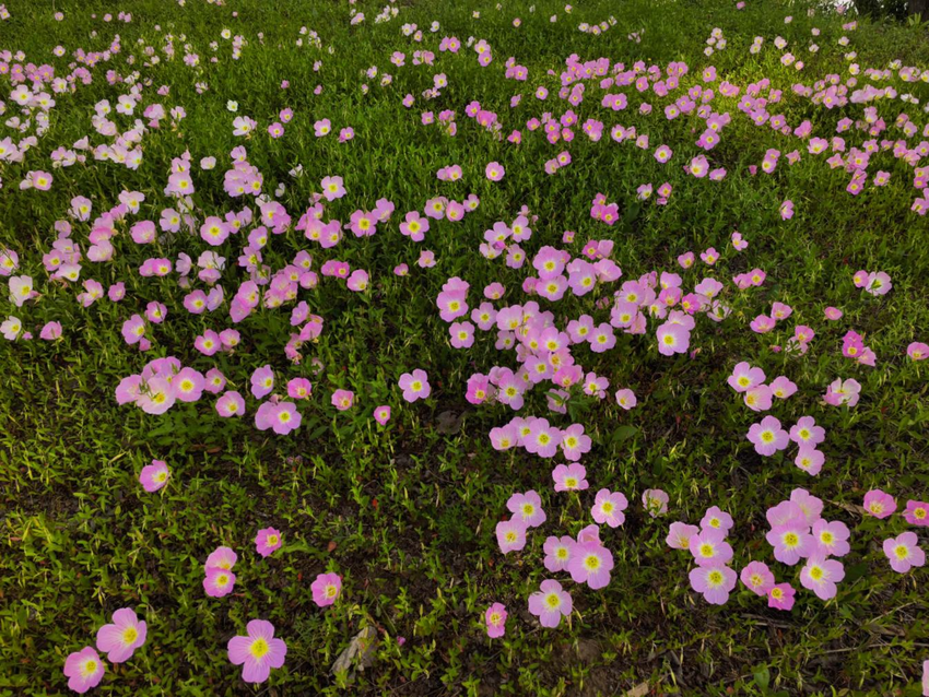 【凤山湿地:月见草粉黛缀春色】 凤山湿地自然生态区,粉白色月见草如云霞铺展,与湿地栈道、碧水清波相映成趣。春日花期,晨雾氤氲中花海若隐若现,落日余晖下更显柔美浪漫,吸引摄影爱好者捕捉“湿地花语”的灵动瞬间。此处亦是生态修复典范,展现远安“护水育花”的可持续发展实践。