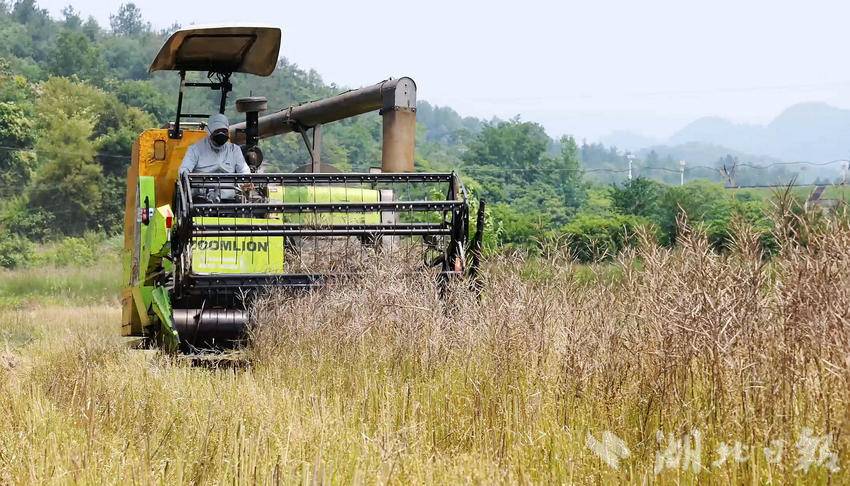 湖北日报客户端讯(通讯员伍玉华、虞顺意、龙剑)当下正值油菜丰收季节,走进远安县洋坪镇洋坪村,饱满的油菜荚在微风中轻轻摇曳,收割机在田间来回穿梭。伴随着机器轰鸣,油菜籽脱壳后被收入袋中,见证着农民的辛劳和丰收的喜悦。