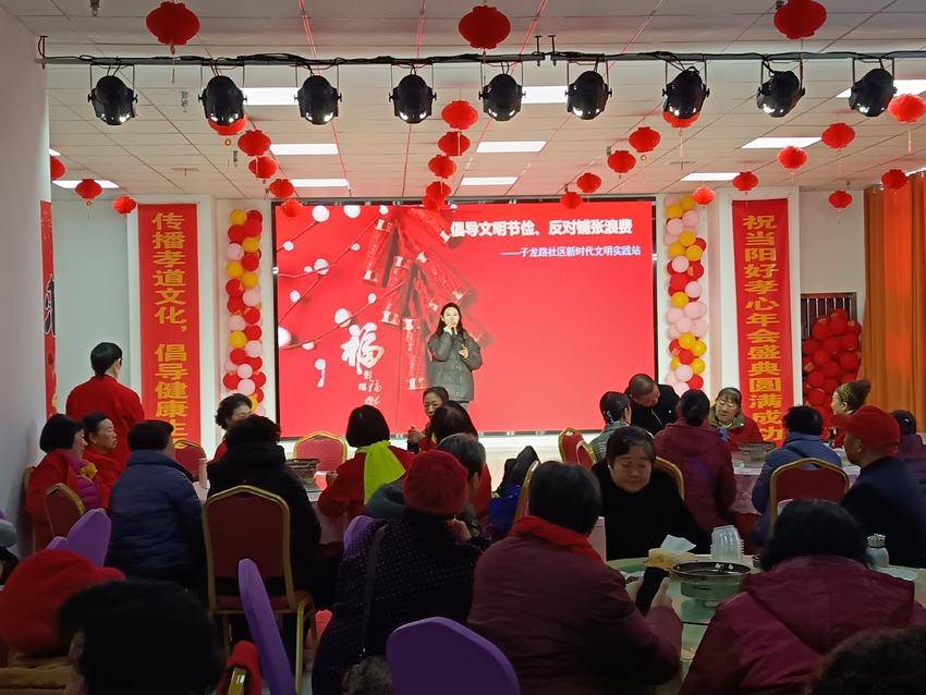 湖北日报客户端讯(通讯员 黄明明)近日,当阳市玉阳街道子龙路社区新时代文明实践站内热闹非凡,“当阳好孝心年会盛典”在此举行。与往年不同的是,今年的年会舞台上,除了孝亲敬老的温情传递,最醒目的是一句掷地有声的倡议——“倡导文明节俭,反对铺张浪费”。