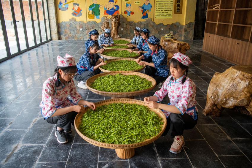 坚持产业支撑,建设农旅融合示范点。 大力发展传统黄茶种植,鹿苑黄茶制作技艺被评为省级非物质文化遗产,在此基础之上鹿苑村坚持守正与创新相结合,首创“品种黄茶+工艺黄茶”模式,深受市场热捧。同时引进企业采取“合作社+农户”模式,建立“流转有租金、务工挣薪金、经营赚现金”的利益联结机制,帮助茶农稳定增收。通过组织茶叶技术培训,培育一批职业农民,组建成立67人的茶园管理劳务队,全村茶园达1100亩,茶叶产业产值突破800万元。