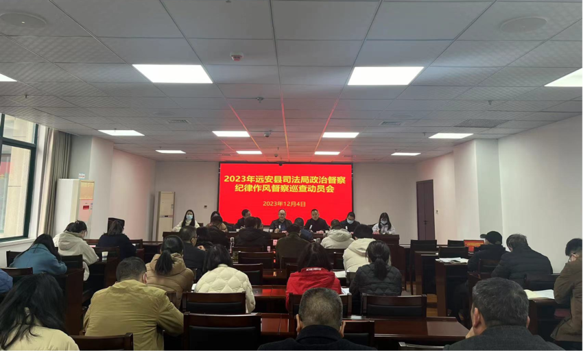 湖北日报客户端讯(通讯员周晨林)12月4日,远安县司法局政治督察、纪律作风督查【湖北日报客户端讯(通讯员周晨林)12月4日,远安县司法局召开政治督察、纪律作风督查巡查动员会,政治督察组全体成员、县司法局班子成员及全体政法干警参加会议。】巡查动员会召开,政治督察组全体成员、县司法局班子成员及全体政法干警参加会议。