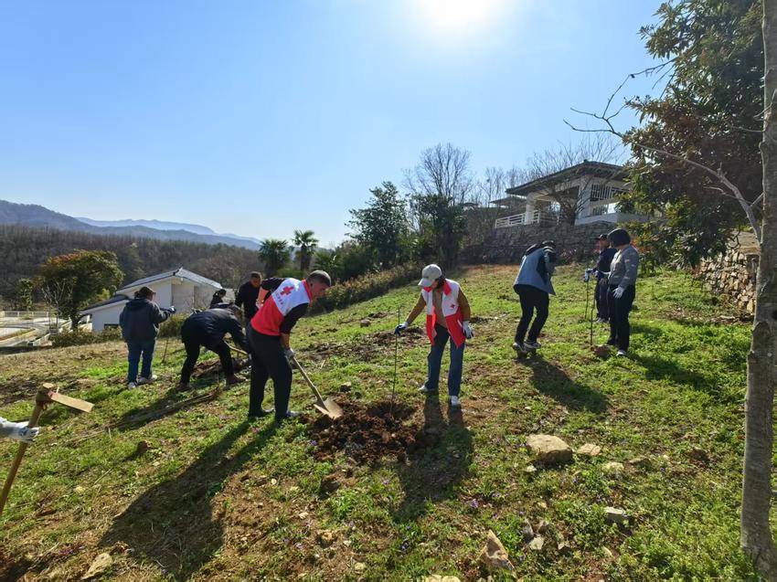 湖北日报客户端讯(通讯员翟达菊、杨丹)当春回大地,万物复苏之际,植树造林正当时。 3月 19日,茅坪场镇九龙村的红十字志愿者们齐聚在九龙烟霞,用实际行动践行环保理念,为大地增添新绿,成为这道靓丽风景线的创作者。 志愿者们早早地来到植树现场,简单培训后,迅速领取工具,两人一组或三五成群,投入到植树活动中。他们挥锹铲土、扶苗填坑、踏土夯苗,每一个步骤都认真细致,一丝不苟。现场气氛热烈,欢声笑语回荡在山间,志愿者们干劲十足,仿佛在进行一场与大自然的亲密对话。