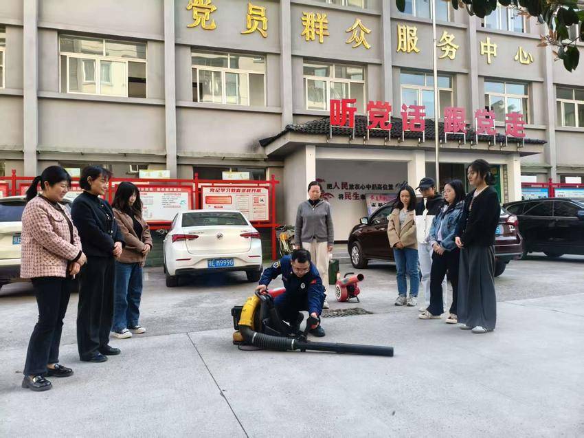 培训现场,消防站工作人员化身“灭火导师”,手持风力灭火机详细讲解其工作原理、适用场景及操作注意事项,一边演示一边强调:“风力灭火机在扑灭地表火时效果显著,使用时需注意角度和距离,确保强劲气流精准压制火势。”现场参与人员专注听讲,不时提问互动,现场学*氛围十分浓厚。