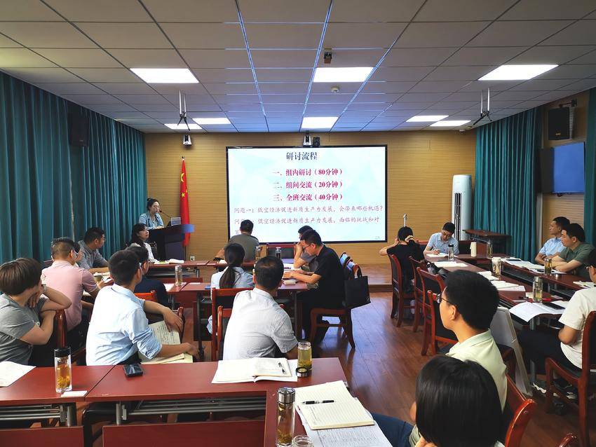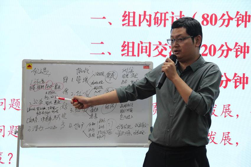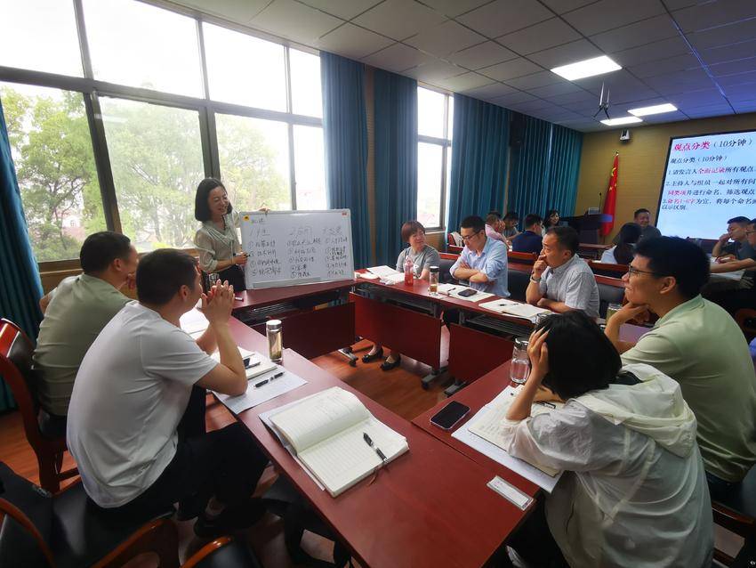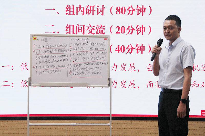 在研讨的过程中,各小组坚持问题导向,按照“机遇——挑战——对策”的模式,分步骤、多角度,对主题要求、内涵、问题症结进行深入的交流,提出解决问题的具体对策建议和改进措施。讨论结束后,各小组就集体研讨的智慧成果,在全班进行交流发言。