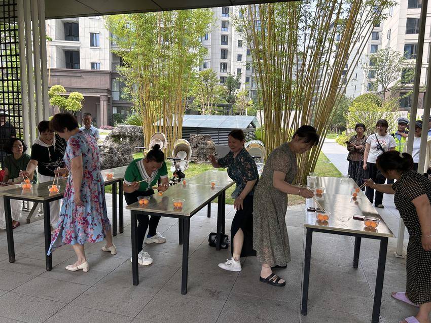 随后,趣味横生的小游戏点燃了居民们的热情。筷子夹乒乓球考验着大家的耐心与技巧,参赛者们全神贯注,小心翼翼,比拼手速与技巧,小朋友们更是踊跃参与;在保龄球击倒矿泉水瓶环节,居民们摆出各种姿势,奋力投掷,现场不时传来阵阵欢呼声和掌声。社区按名次为获胜居民发放了小礼品,居民们喜悦之情溢于言表。