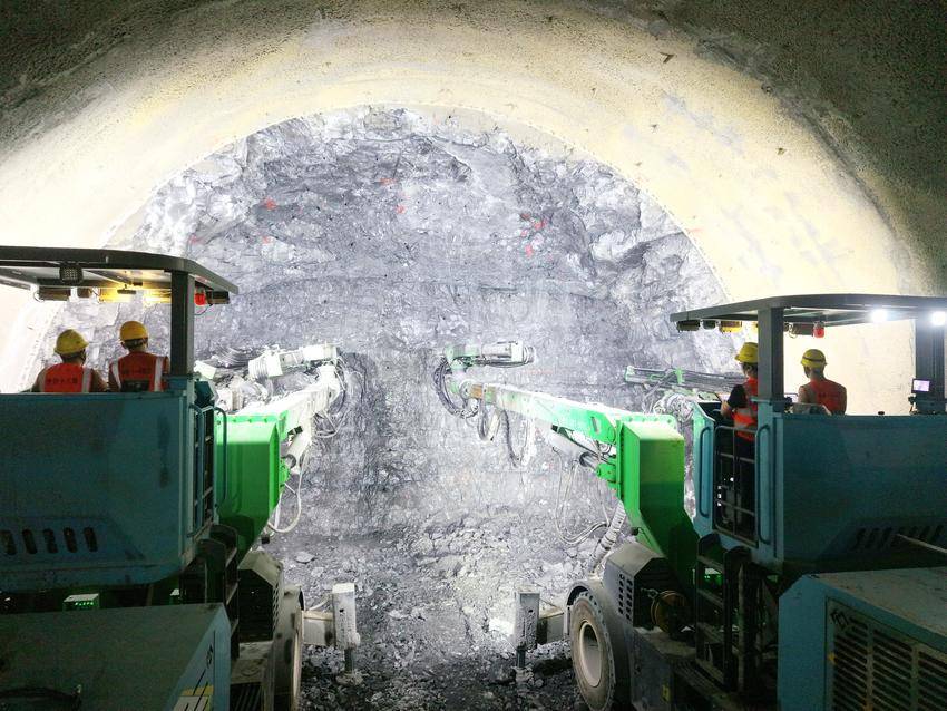 目前隧道施工已完成总工程量的57%。在施工过程中,项目团队克服软弱夹层、瓦斯涌出等难题,积极引进双曲臂凿岩台车、挖改锚杆钻机、湿喷机械手、防水板铺挂台车、超声波热熔焊机、先进工装台车等智能化先进工装设备,并优化了施工工艺,有效提高了施工效率,较原计划提前一个月实现万米掘进目标。