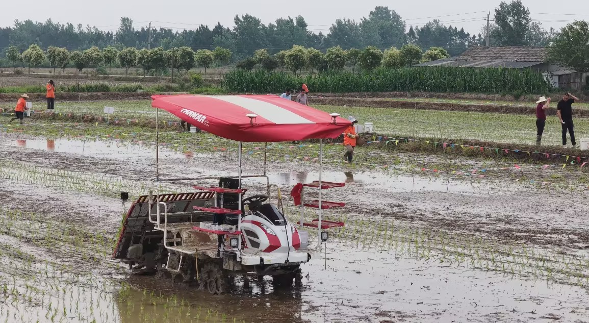 这台沉默的胜利者,正是淯溪镇引入的春耕尖端“武器”,“科技范是竞赛胜利的秘诀。”当阳市农业机械化技术推广站站长陈雪松道出玄机:“无人插秧机搭载北斗导航,定位精度达厘米级,秧苗行距株距毫厘不差,作业效率比有人机械插秧机高,而且彻底解放了劳力。”“比如今天户外达到四十度高温,秧苗必须下田,人工哪怕是传统机械插秧也有中暑风险,而无人插秧机能马上执行。”何家山土地股份合作社负责人张爱明补充道。