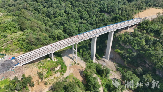 湖北日报客户端讯(通讯员:赵阳)近日,在嫘祖至广坪段工程的控制性工程——庵沟2号大桥上,建设者们正紧密协作推进项目建设,整个工地秩序井然、一片火热。