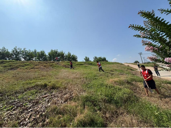最后,模拟巡堤演练,巡堤组按照划分的责任段,携带铁锹、探水杆、记录本等工具,沿河堤展开拉网式排查。排查各类险情并详实记录,及时向指挥组报告巡查情况及存在的险情,并现场进行封堵和加固处理。