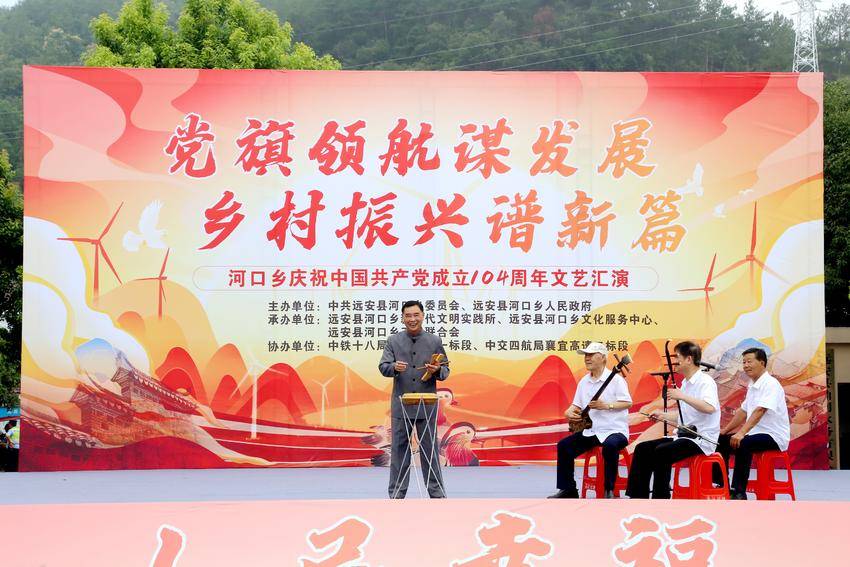 湖北日报客户端讯(通讯员程彩琦、周钰)“鼓点敲开七月天,三大精神记心间……”6月30日,河口乡集镇原小学操场上掌声此起彼伏,民间艺人彭作军怀抱湖北大鼓闪亮登场,为河口乡庆祝中国共产党成立104周年文艺汇演拉开了精彩序幕。他带来的原创鼓书《踔厉奋发勇向前》,通过“传统曲艺+理论宣讲”的形式,以独特的乡音乡韵生动宣讲大别山精神、抗洪精神、抗疫精神,宛如一股红色暖流,将红色基因深深植入群众心田,让党的精神谱系在山乡大地焕发出新的活力。