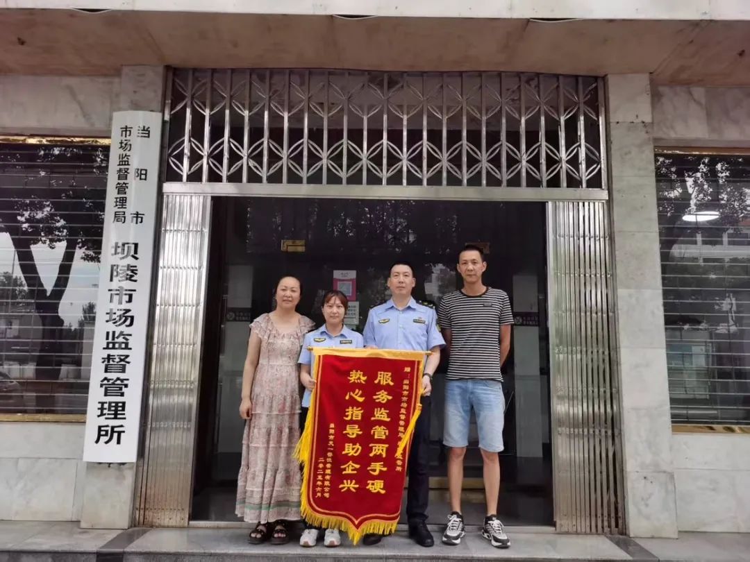 6月30日,当阳市坝陵市场监管所收到一份特别的礼物——一面印有“服务监管两手硬 热心指导助企兴”字样的鲜红锦旗。这面锦旗由当阳市天一餐饮管理有限公司(以下简称“天一餐饮”)专程送来,以表达对市场监管工作人员尽职尽责、高效服务的诚挚谢意。