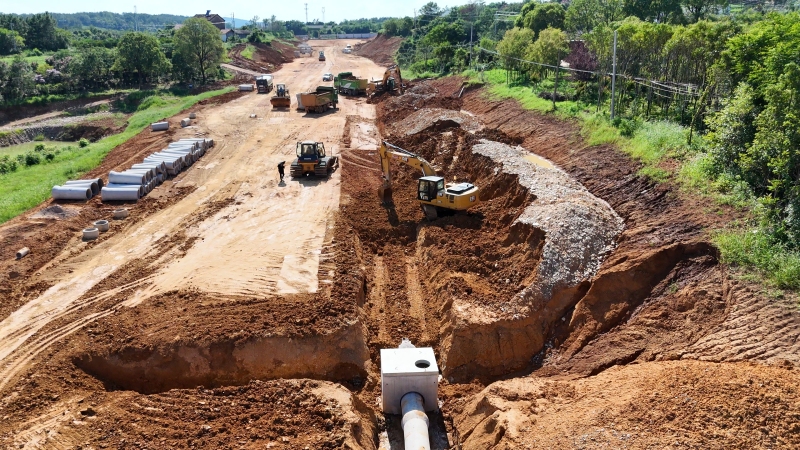 施工现场,各种工程设备正在繁忙有序运转。挖掘机、压路机、运料车等往来穿梭,密切配合。据了解,该项目于2月10日正式开工建设,建设长度约2.4km,宽度30m,双向四车道,设计时速50km,总投资1.66亿元。 据当阳市住建局项目中心工作人员余绍绅介绍,熊家山路西延伸段目前已完成路基土石方工程,盖板涵、箱涵等桥涵工程,以及污水管网安装,正在进行雨水管网、截水沟等排水工程施工,整体进度约65%。7月底计划施工完成管网工程、路基换填和精整作业,具备水稳层施工条件。