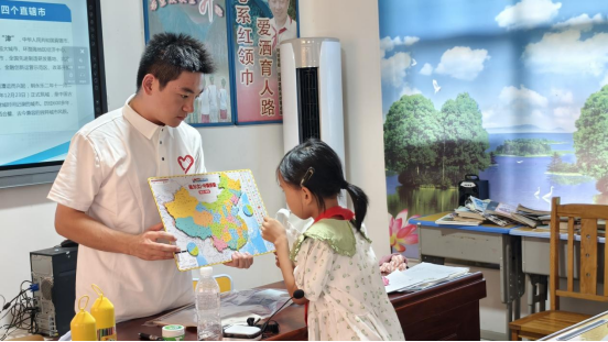 在生动有趣的“中国地理探索”课堂上,团队成员巧妙地运用色彩鲜艳的中国地图拼图教具,带领孩子们开启了一场别开生面的地理知识之旅。