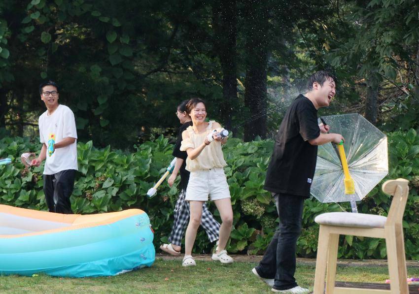 整场活动以水为媒,精心设计五大特色环节,从考验默契的蒙眼传水到速度与力量比拼的海绵运水,从技巧对决的投掷水球比拼到水枪大战模式,大家互相熟知、追逐嬉戏、释放压力,在清凉互动中拉近心与心的距离。活动还设置勇士挑战环节,青年朋友们通过才艺展示获取水枪、雨伞等道具,彼此在轻松的氛围中加强了解,在欢笑与挑战中打破陌生的界限,现场洋溢着热烈欢快的氛围,青春的热情在一次次互动中持续升温。