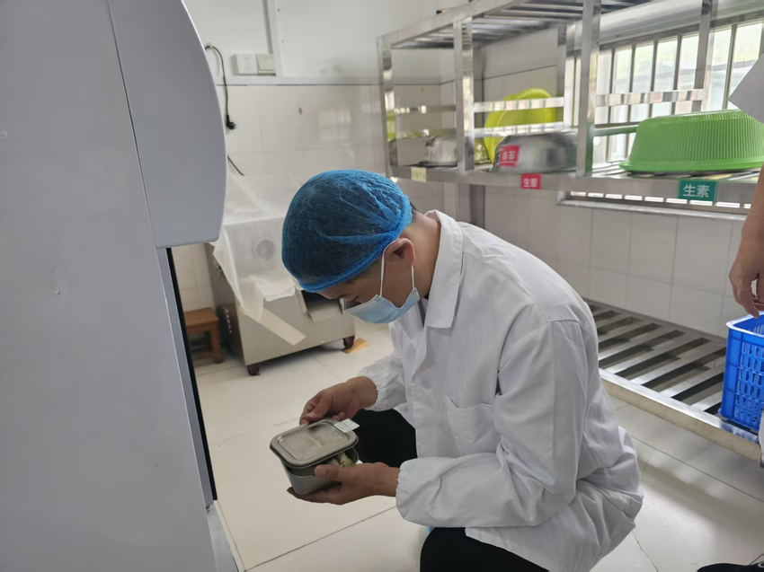 此次检查聚焦校园食品安全关键环节,检查组先后深入两所学校的食堂操作间、食材储存仓库、餐具消毒间等重点区域,通过“看现场、查台账、问流程”相结合的方式,细致排查安全隐患。在食材管理方面,重点核查米、面、油、肉、蛋、奶等大宗食材的采购台账、检验检疫合格证明及储存条件,确保食材来源可追溯、质量可管控;在操作规范上,严格检查从业人员健康证持有情况、食品加工流程是否符合卫生标准、餐具消毒是否彻底等,坚决杜绝“带病上岗”及操作不规范问题;同时,全面排查校园内是否存在违规销售“三无”食品、过期食品等现象,并向学校负责人及食堂工作人员着重强调落实食品安全管理制度的重要性。
