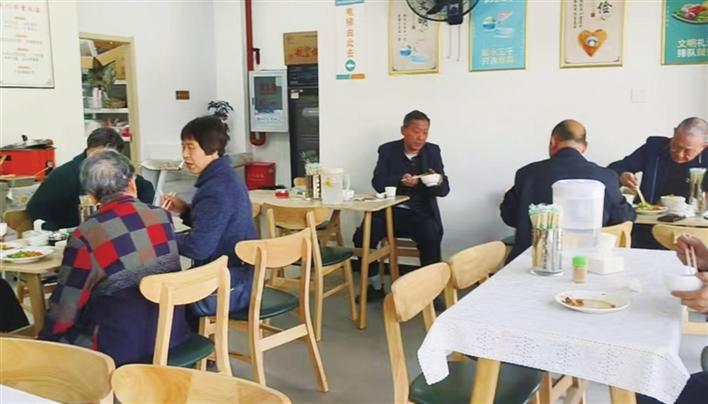 而在一楼“幸福食堂”里,工作人员正在准备当天的午餐,红烧肉焖土豆、清炒时蔬、番茄鸡蛋汤的香味弥漫整个空间。“我们每天20块钱的餐费标准,包含早中晚三餐,对于行动不便的老人,我们可以直接送到楼上房间吃。”工作人员史巧巧一边摆放适老化餐具一边介绍。