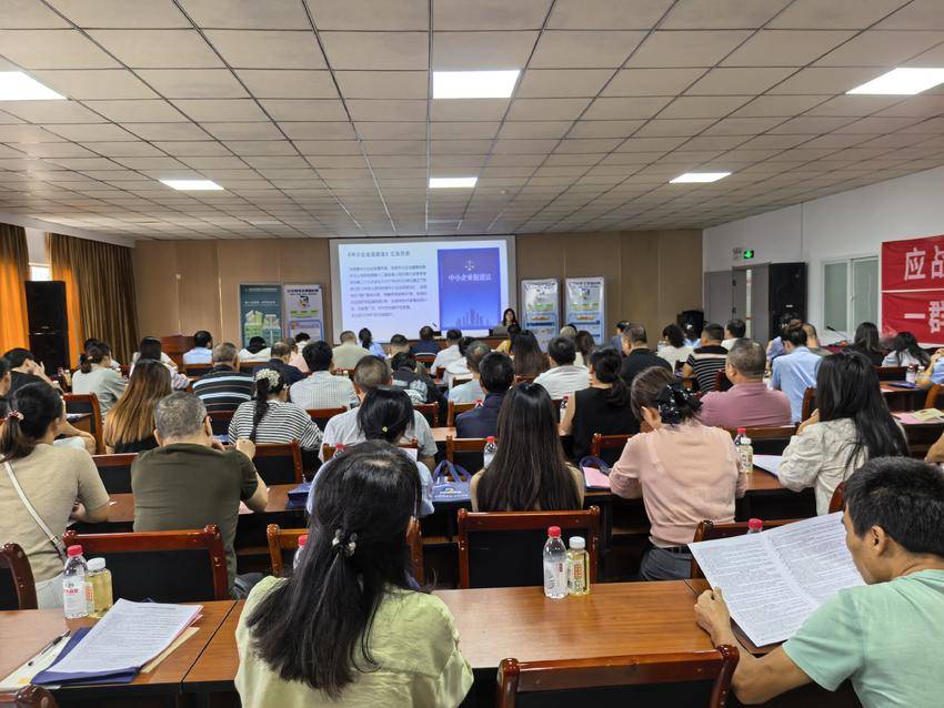 活动开场,全体与会人员集中观看了《中华人民共和国民营经济促进法》宣传片,进一步增强了对民营经济法律保障体系的认知。当阳市市场监管局结合真实案例,深入解读《中华人民共和国反不正当竞争法》,并针对网络经营合规、恶意投诉应对等热点问题作出专业指导,切实提升了企业防范风险与依法经营的能力。当阳市司法局则围绕《中华人民共和国中小企业促进法》等法规,系统讲解政策要点与法律适用,助力企业用足政策红利、规避运营风险、充分享受税收优惠,真正把政策优势转化为发展实效。现场还向参会代表分发了法律原文读本,方便企业后续深化学习与应用。