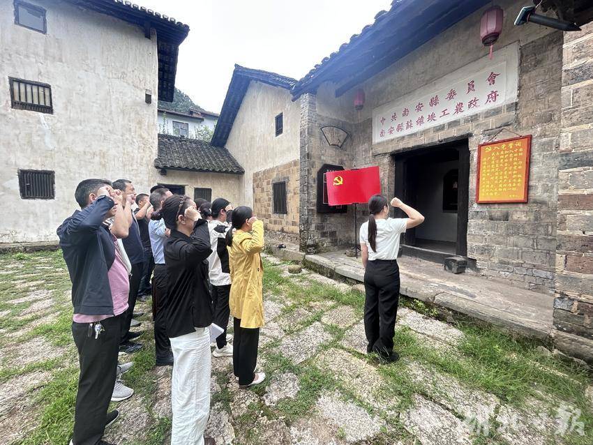 义诊服务结束后,党员干部们怀着崇敬之心前往南安县苏维埃工农政府旧址。在陈列馆内,大家聆听革命历史,观看珍贵实物与照片,重温那段烽火岁月。“我志愿加入中国共产党,拥护党的纲领,遵守党的章程,履行党员义务……”铿锵有力的誓言在旧址内久久回荡,既是对入党初心的重温,更是对使命担当的再次承诺。