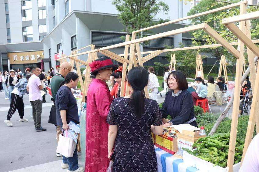 与此同时,李家湖社区“村社共建庆团圆,公益集市惠民生”主题活动在中建宜昌之星B区滨江广场拉开帷幕。文艺演出现场,社区居民与辖区文艺骨干带来舞蹈《古丽古丽》、器乐合奏《我爱你中国》、诗朗诵《跟着诗仙去旅游》等节目,中间穿插中秋民俗知识问答与河溶镇土特产、农副产品推荐环节,台下掌声与欢笑声此起彼伏。广场另一侧的“公益集市”热闹非凡,河溶镇民新村、建国村、民耀村的农户摊位前,葡萄、辣椒、蔬菜、手工辣酱等农特产品琳琅满目,居民们争相选购,共计售出5000余元。李家湖社区居民代表张维铸感慨:“这样的共建活动不仅让我们感受到了乡村的变化,也让城乡群众的心贴得更近了。”
