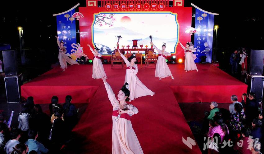 夜幕降临、华灯初上,一场盛大的国风表演在远安马拉松广场进行。表演人员们身着华丽的汉服,在悠扬的古乐声中翩翩起舞,让游客们沉浸其中,感受着传统文化的韵味与魅力。