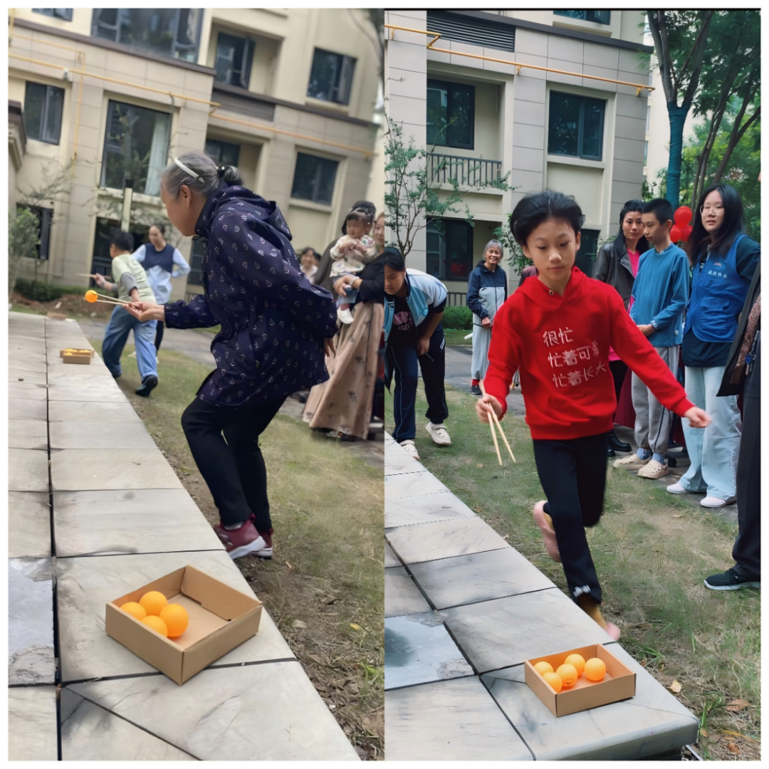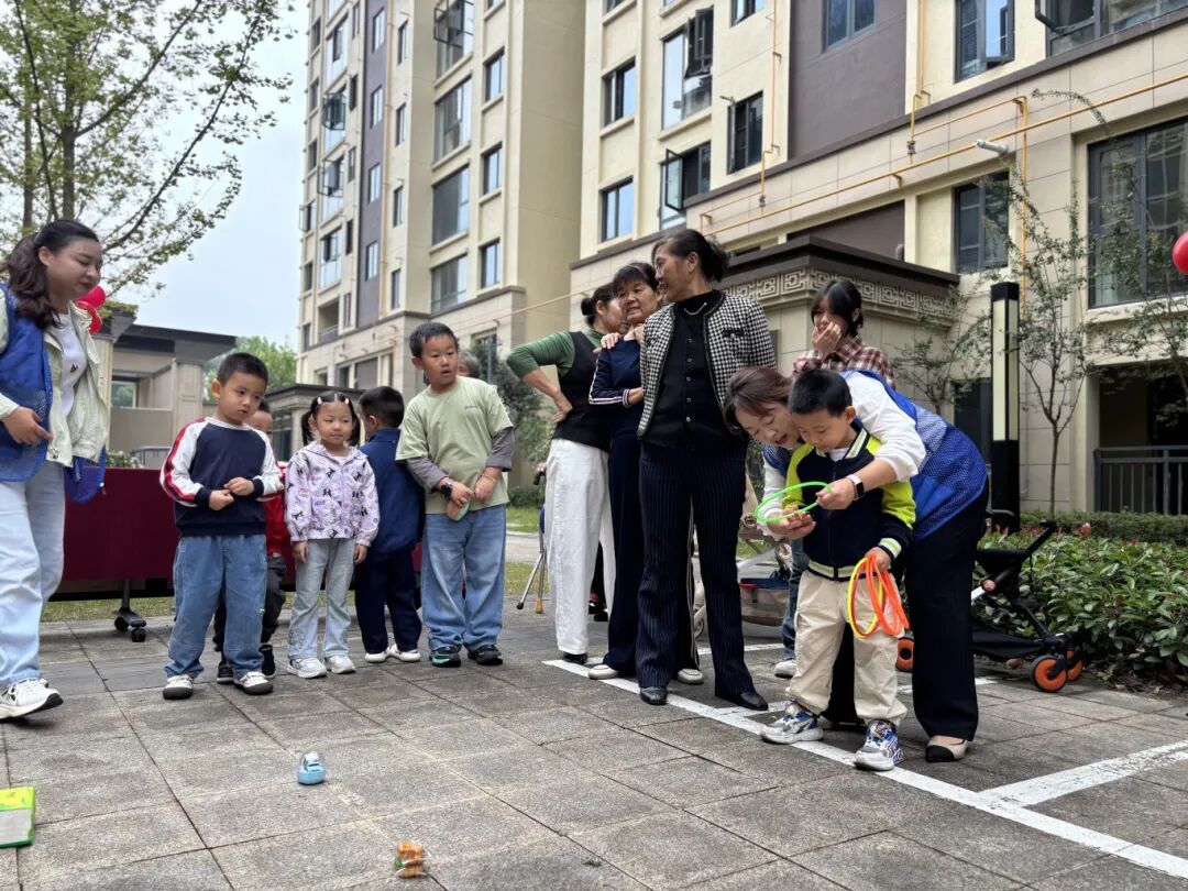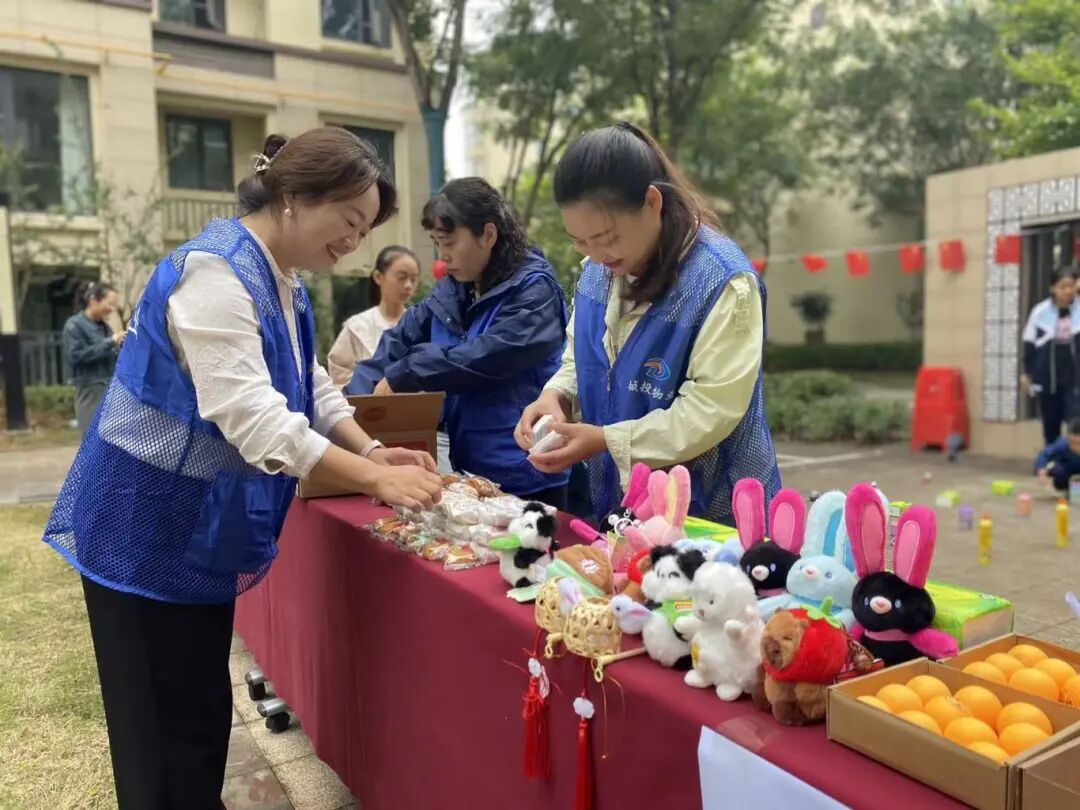 清晨的游乐广场被节日装点得格外喜庆:飘扬的红气球、趣味十足的游戏区、创意满满的手工桌……家长与孩子们携手参与“亲子互动游戏”,欢声笑语回荡在小区每个角落,知识问答环节里,邻里默契配合,既增进了感情,更传递了家国同庆的温暖情怀。