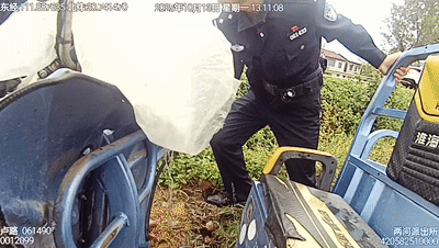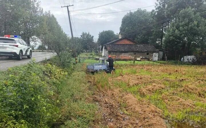 值班民辅警迅速出警赶到现场。辅警李波和胡玉林踩着泥水下到田里,凭借对农村路况和三轮车性能的熟悉,很快商定了方案。