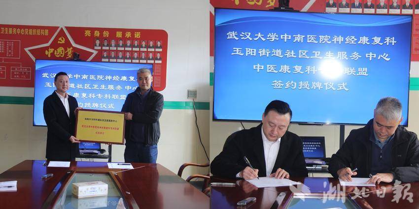 湖北日报客户端讯(通讯员 向侨萍)近日,武汉大学中南医院神经康复科与当阳市玉阳街道社区卫生服务中心中医康复科举行专科医疗联盟签约仪式。此次签约授牌,标志着玉阳街道社区卫生服务中心中医康复科与武汉大学中南医院神经康复科的合作拉开序幕,将为区域康复医疗事业高质量发展注入新动力。